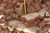 d) O horizonte BA foi alterado para Bt1, em função da textura e da cor. A textura a partir do horizonte Bt1 (antes BA) é muito argilosa. A consistência dos horizontes de 41 a 177 cm é muito plástica e muito pegajosa.